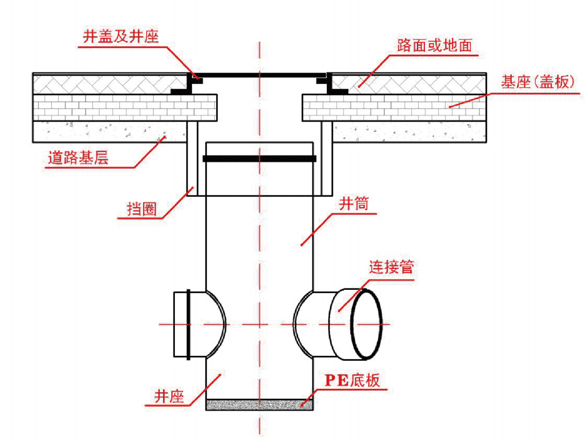 2、使用壽命長:設(shè)計使用壽命可達(dá)50年,耐老化性能優(yōu)異。HDPE材料的韌性能抵抗一定強(qiáng)度的地基沉陷,抗開裂。